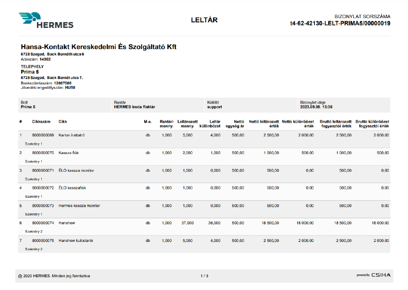 - Leltározott bruttó fogy.ár érték: leltár során felrögzített tételek bruttó értéke Forintban kifejezve